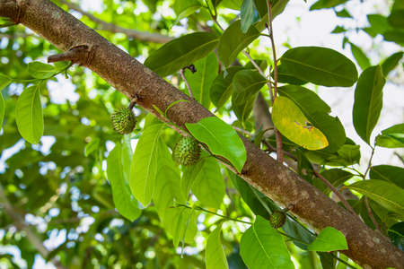 Green leaves and fruits on a tree in the rainforest of Thailand