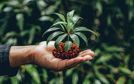Fresh Arabica coffee berries with fresh seed coffee tree growth in green organic farm agriculture