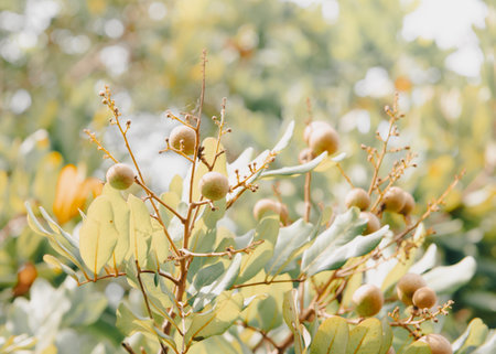 Macro closeup shot a cluster of wild fruit on the tree in the rainforest. selective focus shot