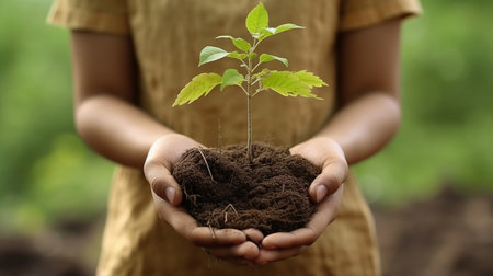New life begins with organic planting, hands holding seedling outdoors generated by artificial intelligence