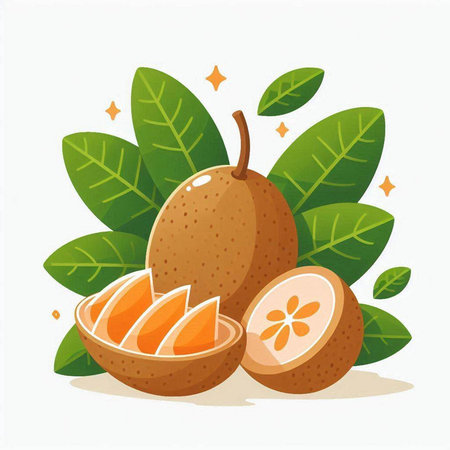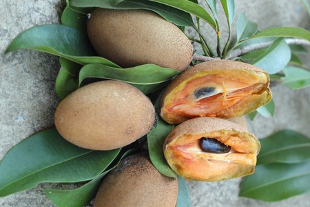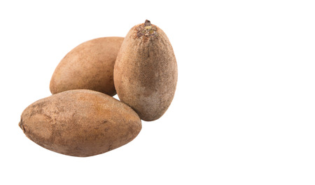 Sapodilla fruit (Manilkara zapota) and other names such as sapota, chikoo, chico, naseberry, or nispero. Sapodilla is tropical fruit evergreen tree and sweet taste fruit