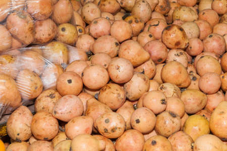 Pile of ripe Sapodilla fruit at tropical fruit store