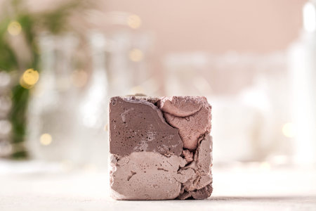 Close-up two homemade brown soap bars for spa.