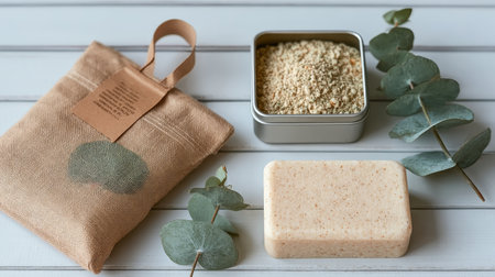 Eco-Friendly Minimalistic Soap Bar Bath and Cleaning Set with Washcloth Pouch and Eucalyptus Scent