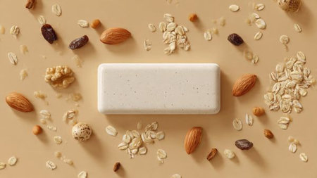 Natural soap with nuts and raisins on a beige background