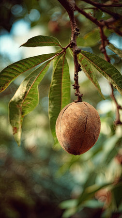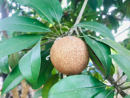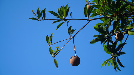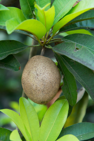 Sapodilla or sapote fruits of tropical evergreen tree (lat.- Manilkara zapota)