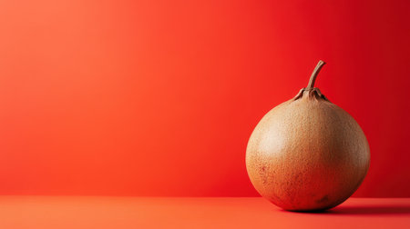 A fresh whole fruit sits elegantly against a vibrant orange background, symbolizing health and freshness. Perfect for food-related themes or healthy lifestyle concepts.