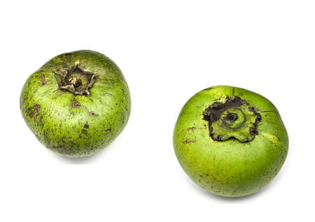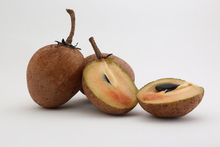 Selective focus on Ciku (Manilkara zapota) fruit with a white background.