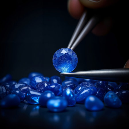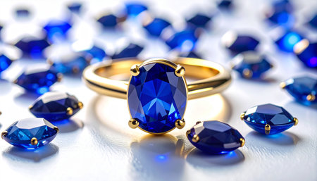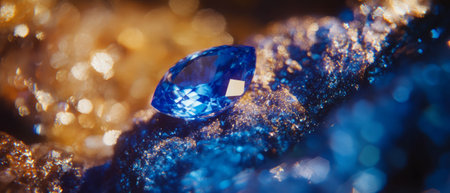 A sapphire stone radiates brilliant blue hues, showcasing its stunning texture and shine