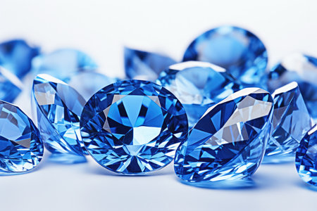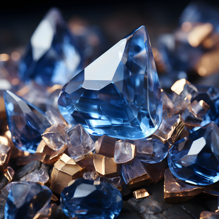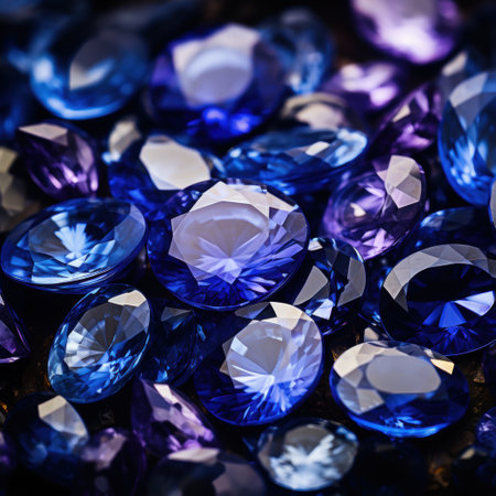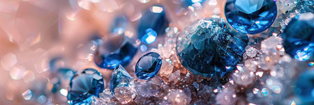 A captivating image of blue gemstones sparkling against a soft, dreamy background. The gems exhibit vibrant colors and intricate reflections, evoking a sense of luxury and beauty.