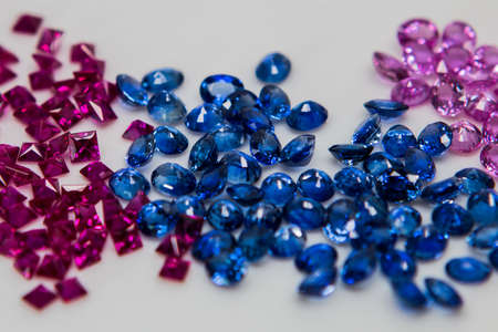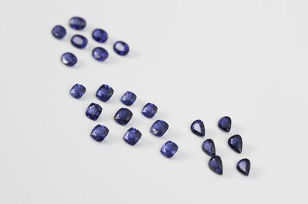 Set of blue sapphire gemstone. Gems different cut