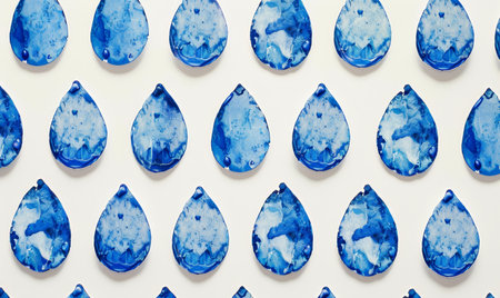 A pattern of blue water droplets is displayed on a white surface, highlighting intricate designs and variations in shade, enhancing visual appeal and creativity.