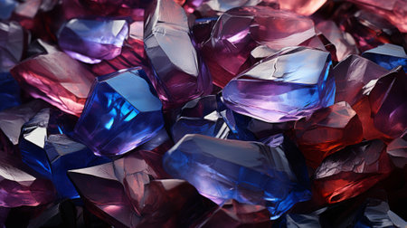 A stunning display of uniquely cut gemstones showcasing an array of colors and intricate reflections, creating an eye-catching and luxurious visual appeal suitable for various design projects.