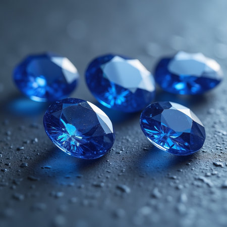 Scattered blue gemstones, glittering with light.