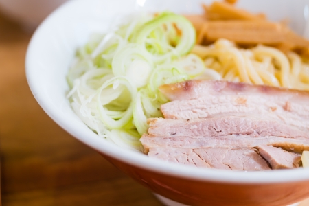 ramen japanese food style pork onion sliceed noodle eat with miso soup