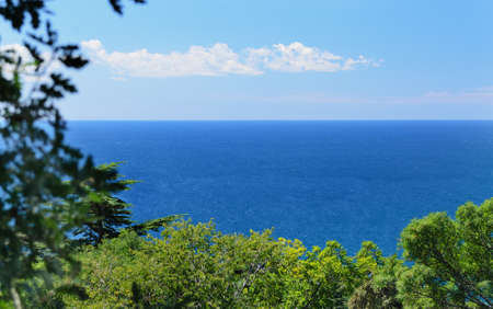The sea and rocks on the south coast. Crimea, a landscape on a sunny day. Top view.
