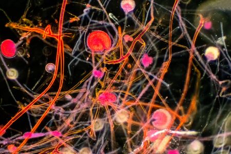 Rhizopus is a genus of common saprophytic fungi. Rhizopus bread mold under the microscope.