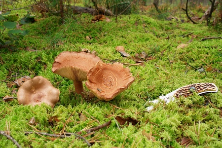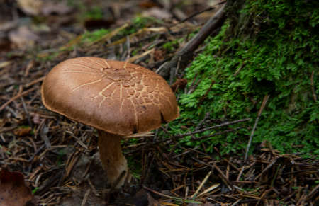 Paxillus involutus mushroom in forest of Curonian spit national Park in autumn. Russia