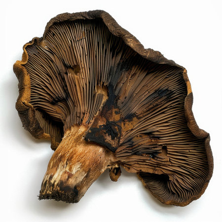 Single Matsutake mushroom cap, highlighting its unique texture against a white background.