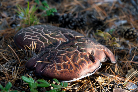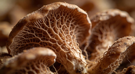 Exploring the intricate textures and colors of wrinkled mushroom caps in nature