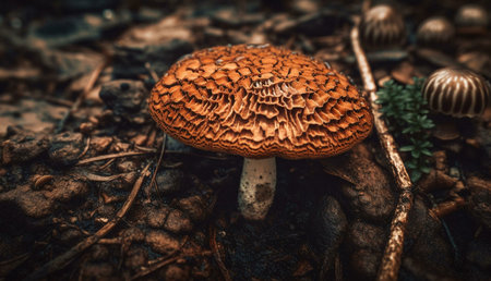 A macro shot of a mushroom in the forest. Edible or inedible.