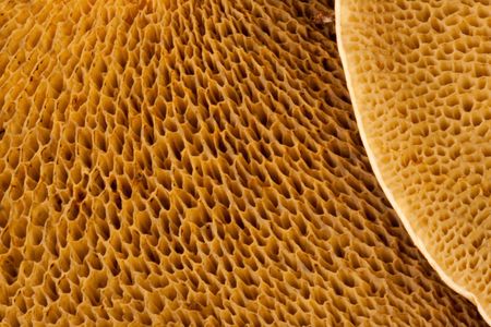 Exploring porous mushroom stems with spongy textures and varied colors in nature
