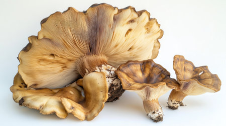 Shiitake mushrooms on a white background. Shallow depth of field.