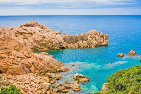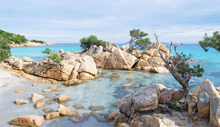 View over the enchanting beach of Capriccioli, one of the most beautiful seaside places in northern Sardinia, Italy