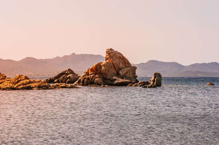 beautiful sea at sunset with rocks and mountains in the background.Sardinia