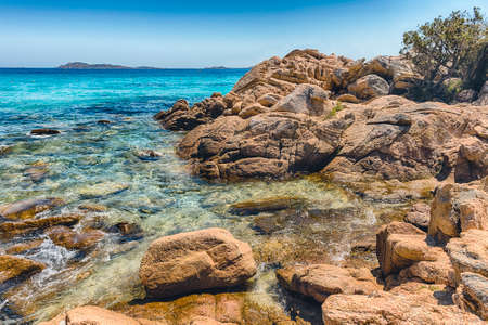 Granite coast of Mediterranean sea in Maddalena archipelago, Sardinia, Italy.