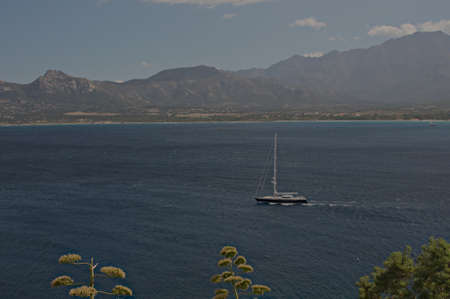 sailboat navigating the bay just outside Calvi on the island of Corsica