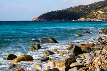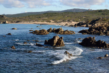 La Colba Bay on North Sardinia, Italy. Rocks, Stones and Waves on Sea. Sardinia is the Second Largest Island in Mediterranean Sea.