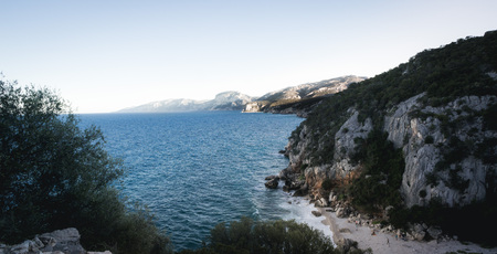 sea ​​of ​​the gulf of orosei sardinia panoramic view of the cliffs and the sea