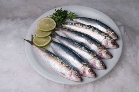 Sardine with lemon on the plate, pilchards