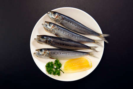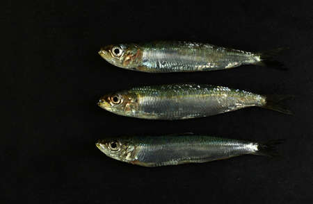 Sardines on a black background. close-up shot.