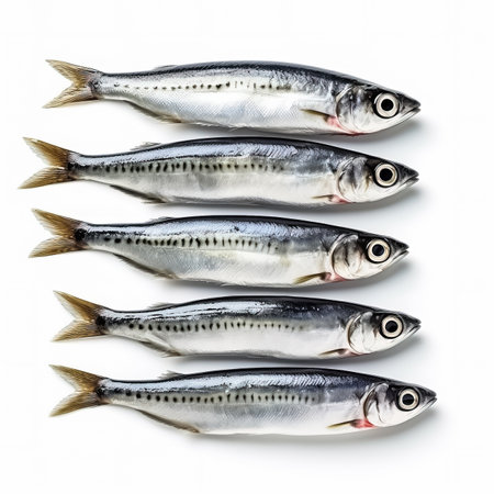 Sardines full fish isolated on white background top view