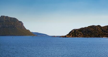 Seaside view of Isola Tavolara in morning light, Sardinia Italy
