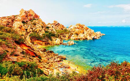 Beautiful Sardinia island landscape with granite rocks and azure coloured bays in Porto Pollo