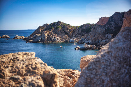 Rocky coast of the island of Sardinia in the Mediterranean Sea