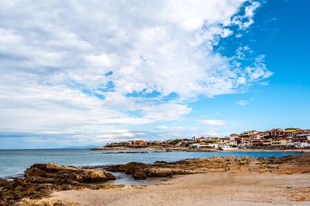 View of the beach inside the city of Porto Torres in a cloudy day of autumn
