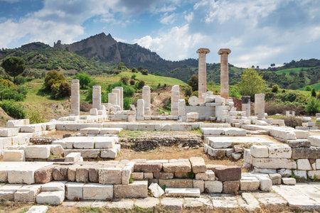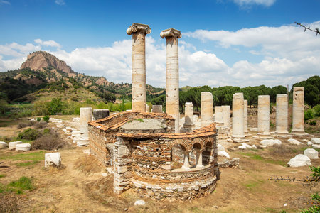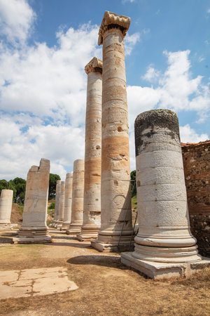 Temple of Artemis and Ancient City of Sardis or Sardes in Salihli, Manisa on a sunny day