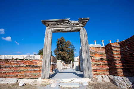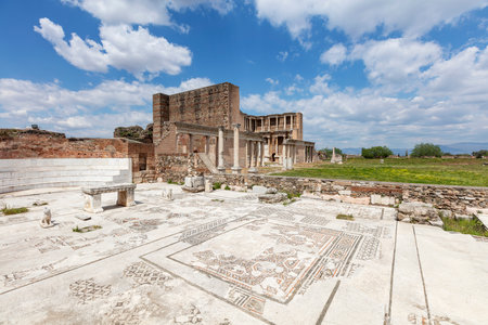 Ruins of Marble court in bath gymnasium complex in Sardis, Turkey