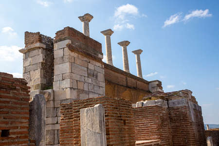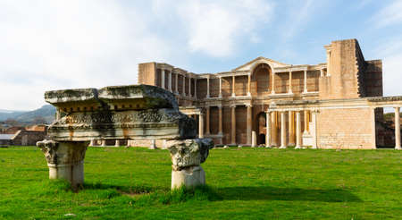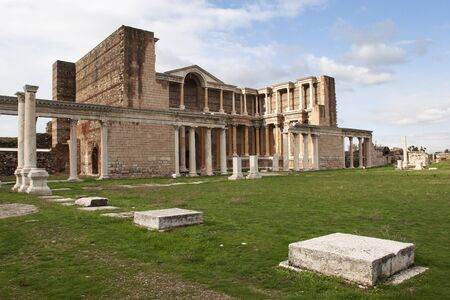 Ancient City Sardes (Sardis) Ancient City with gymnasium and synagogue ruins and columns in Manisa.
