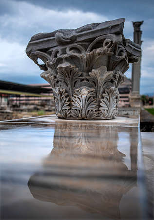 Ancient Roman capital close up in archaeological excavations of Ostia Antica - Rome - Italy