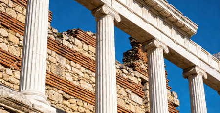 Ancient columns in the archeological area of Philippi, Eastern Macedonia and Thrace, Greece