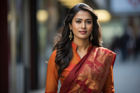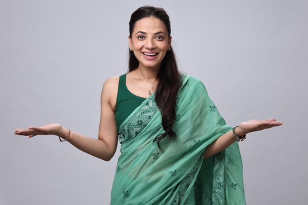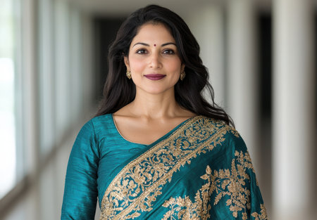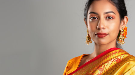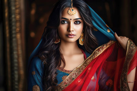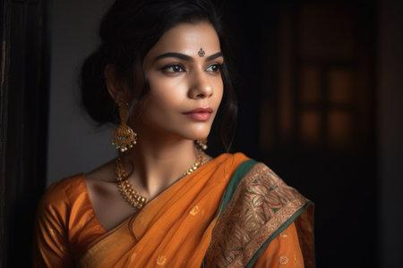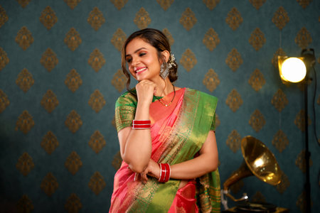 Portrait of a beautiful Indian woman wearing saree and accessories