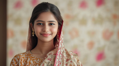 Portrait of a beautiful indian woman smiling and looking at camera