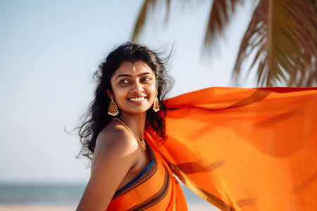cropped shot of a beautiful woman wearing an indian sari, created with generative ai