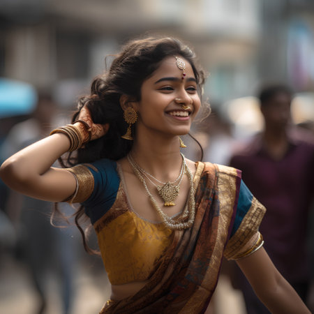 Unidentified indian woman in saree dancing at the street.