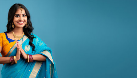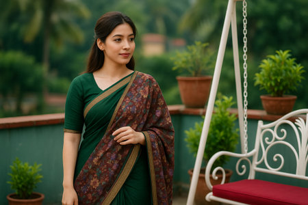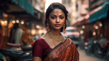 Beautiful Indian lady showcasing traditional fashion with elegance and charm. AI generated.